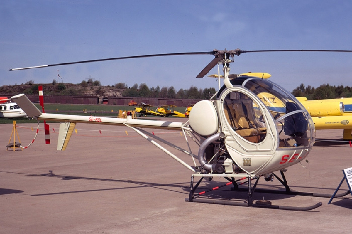 The brand new C-model of the Hughes 300 is seen during a display at Säve Airport very soon after the delivery.