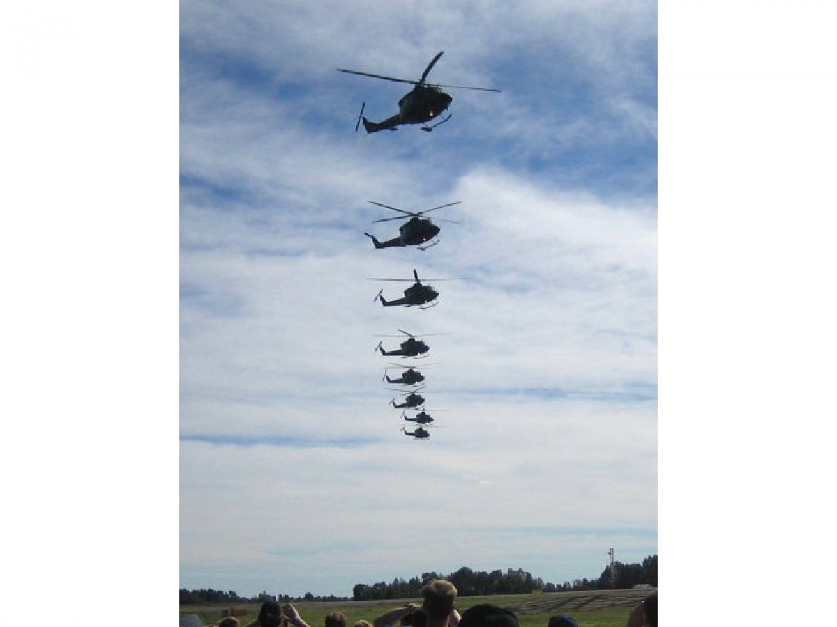 Eight 412s of the RNAF in a tight formation at the Rygge Airshow. The Norwegian Air Force has 19 Bell 412s in its organization.