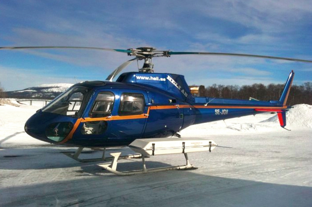 Heli i Arjeplog\'s newest addition, SE-JGV, ready for heli ski operations.