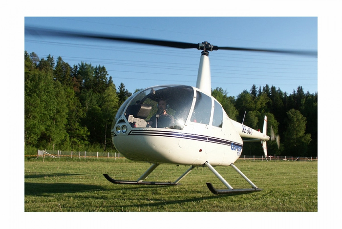 Taking off for a short sightseeing tour over the Fittja and Alvik area. SE-JGX was used for helicopter tours at a local event by Copterflyg AB the whole weekend. The rather new company Copterflyg AB has focused in sightseeing tours and helicopter taxi in large parts of Sweden, currently flying this R44 and a Jet Ranger (SE-JML).