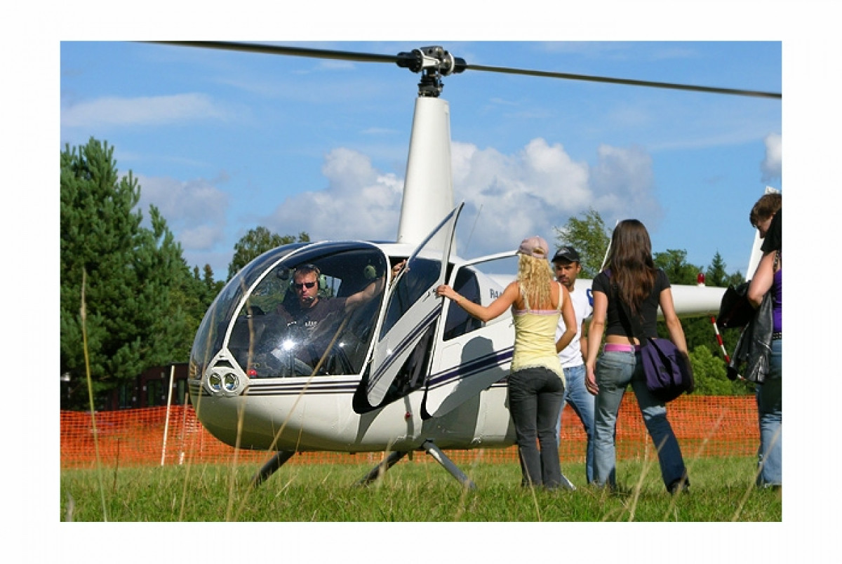 Loading some passengers at the Fyrisfestivalen event in Uppsala for a sightseeing flight. Pilot Daniel Jansson is seen at the controls.