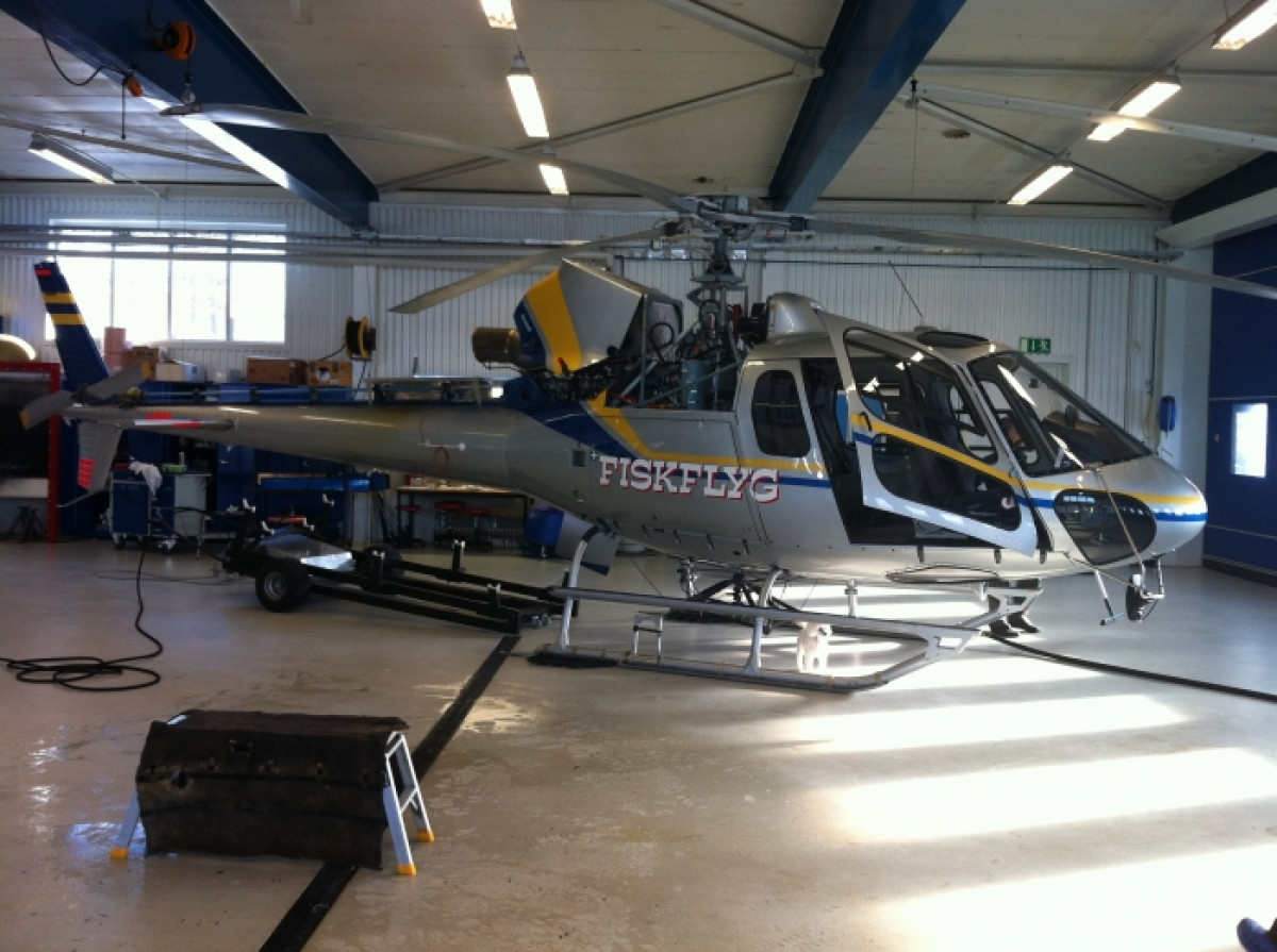 Preparing track and balance of 'Silvertärnan'. Note Fiskflyg's watchdog, who is standing under the helicopter to make sure that everything goes right.