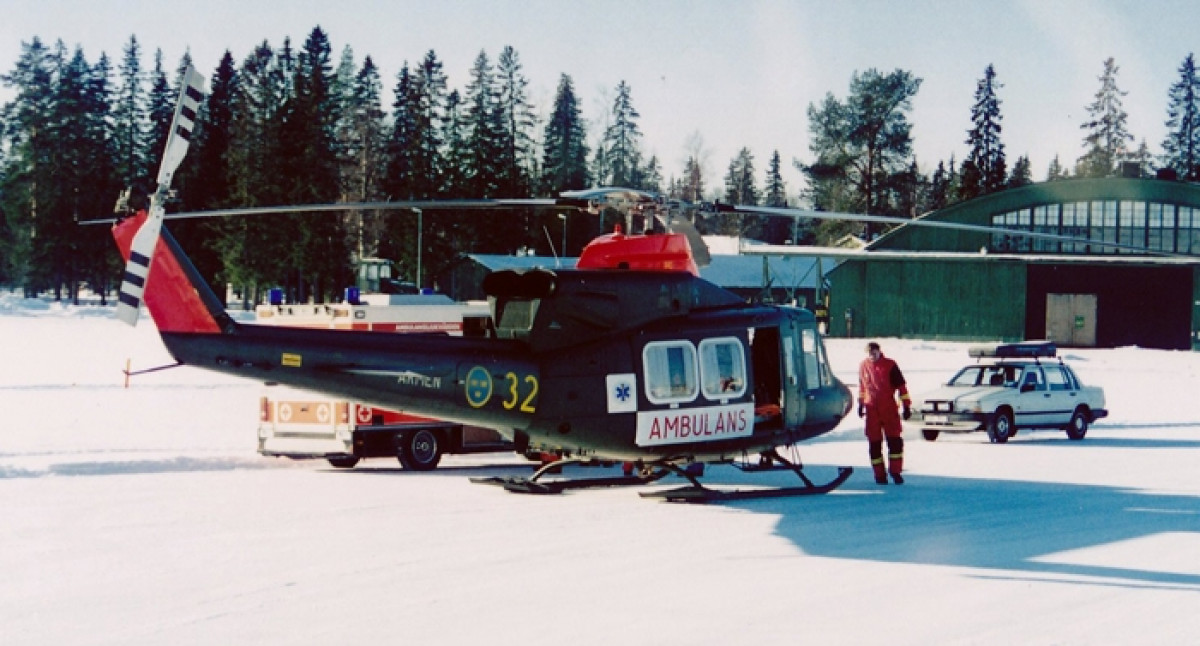 Patient transfer at the AF1 Helicopter Base in Boden. The EMS helicopter was currently based in Lycksele.