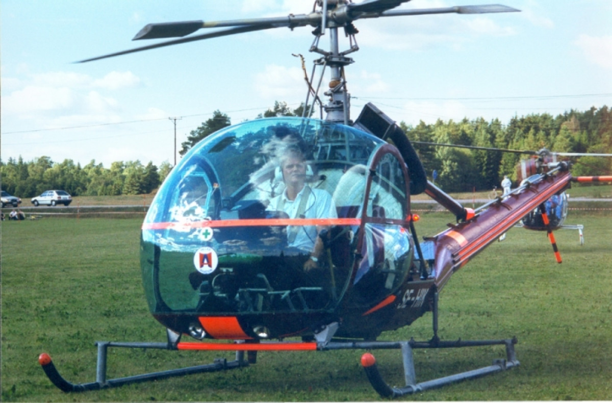 Preparing to take off from Vallentuna Airfield north of Stockholm. The Bell 47 SE-HAL is visible in the background.