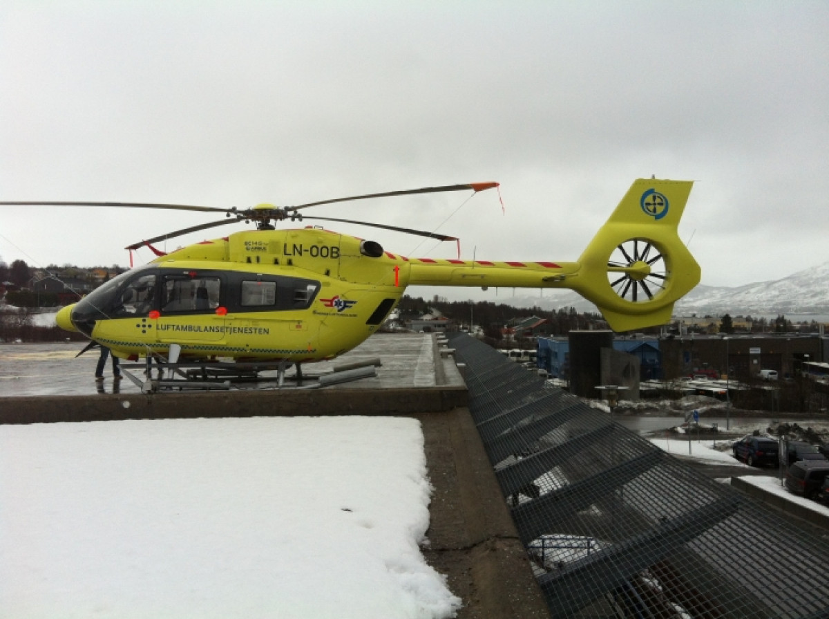 Photo taken on the Helipad of Tromsø Hospital in northern Norway. This helicopter is operated out of the new station, which sits at Evenes Airport in Narvik. This brand new Airbus H145 (EC 145 T2) is expected to reach approximately 170.000 people in the region.