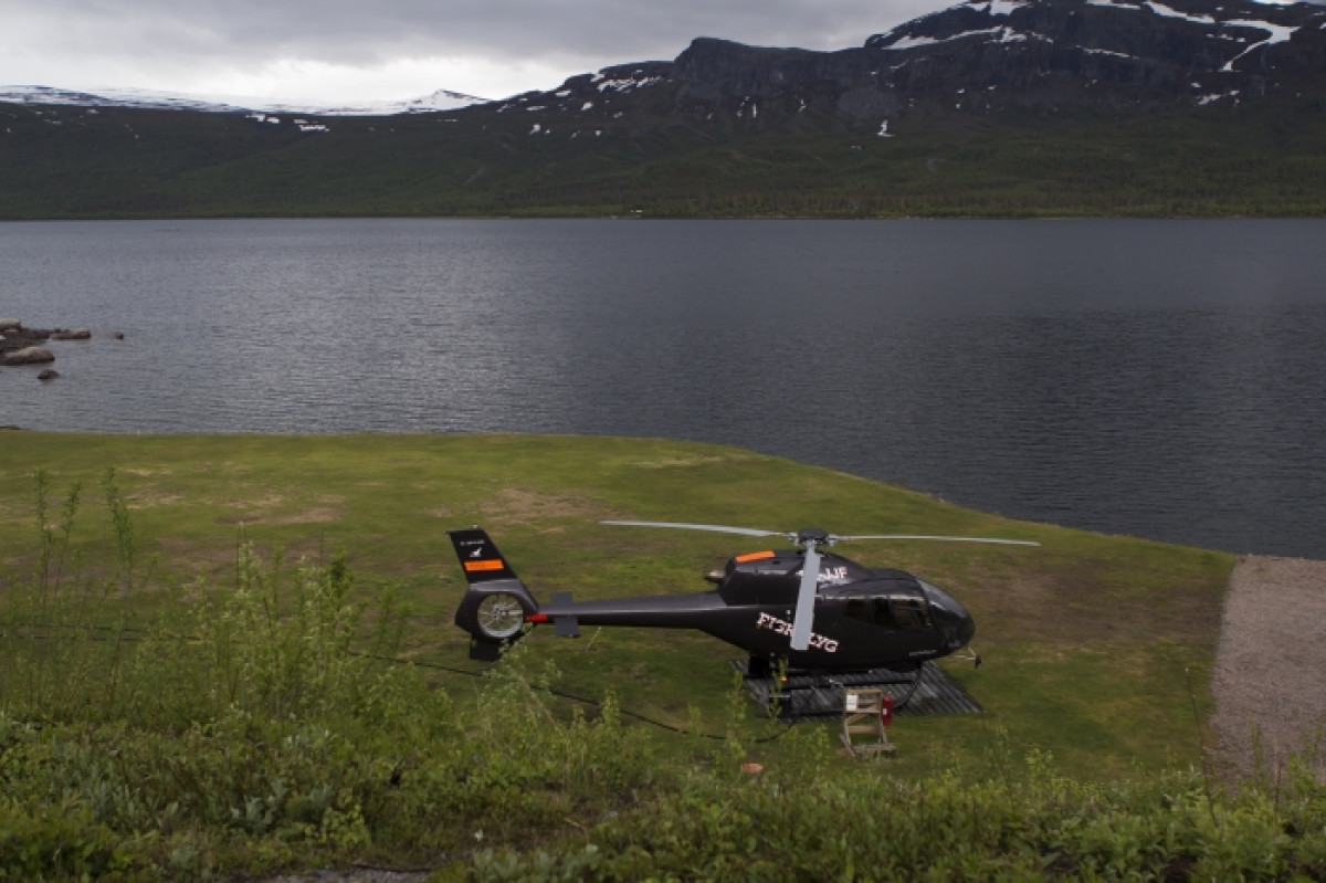 \'Gråsparven\' is taking a rest at Fiskflygs\' heliport in Stora Sjöfallet.