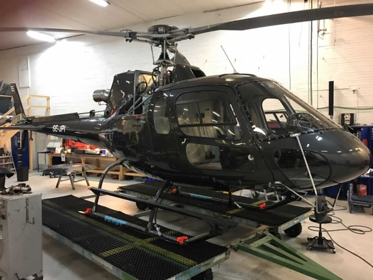 Swedcopter 958, fresh out of a 12-year inspection at HeliAir's main base in Västerås. The aircraft has been repainted from the all-green exterior to the harmonized HeliAir livery.